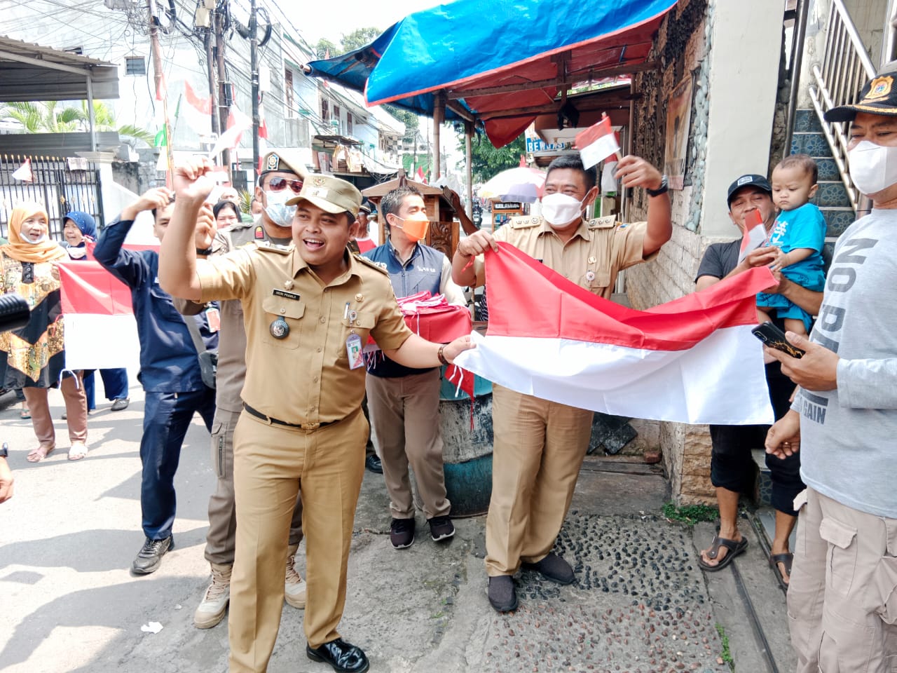 Wukir Prabowo, SH Didampingi Lurah Tanjung Duren Selatan Indri Prawiji S. STP. M. AP, Sekel, berserta Staff, Satpol-pp Kelurahan Tanjung Duren Selatan, Para RT/RW. 06, FKDM turun langsung ke wilayah Tanjung Duren Selatan membagikan Bendera merah putih kepada Masyarakat Tanjung Duren Selatan.