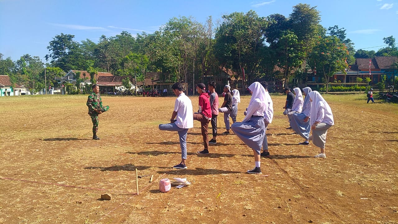 Di pagi hari yang sedikit mendung, Sertu Irwan Babinsa Koramil 0822/05 Wringin memimpin senam kepada siswa-siswi SMK Wringin dilapangan Desa Wringin Kecamatan Wringin Kabupaten Bondowoso.