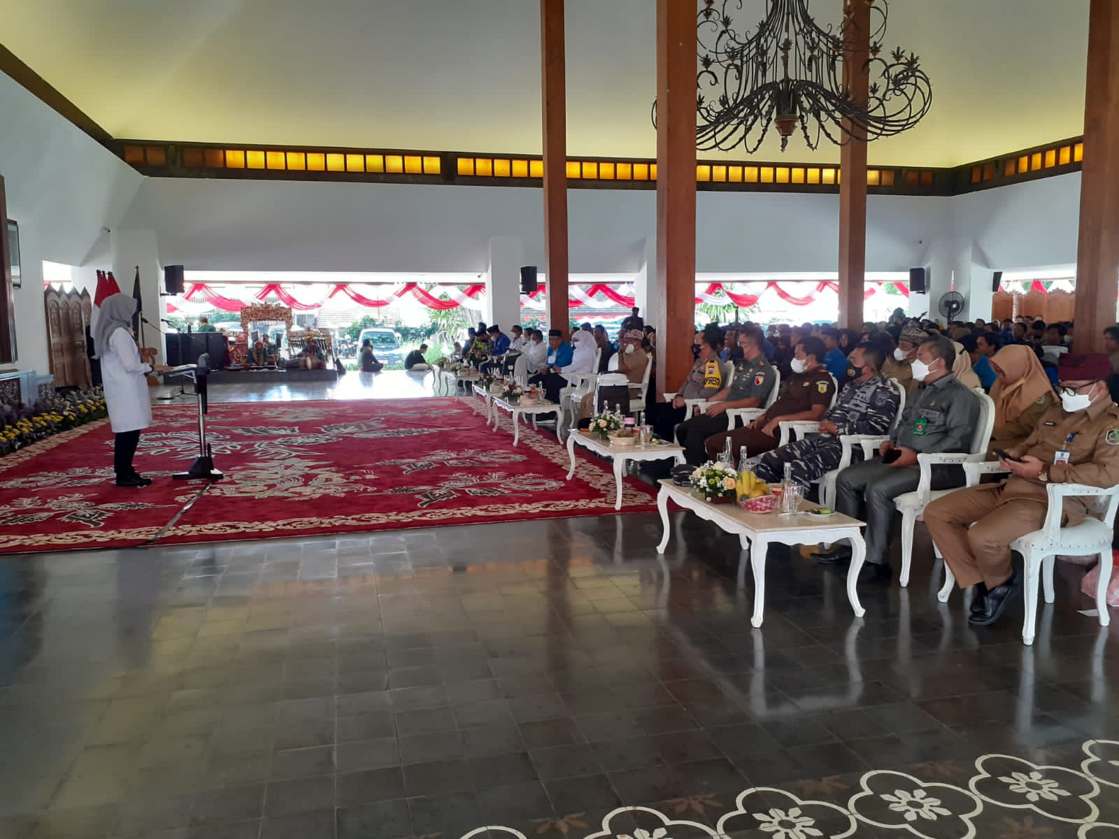Hj. Ipuk Fiestiandani, S.Pd Bupati Banyuwangi, I Made Cahyana Negara, SE Ketua DPC PDIP Banyuwangi, Kombes Deddy Foury Millewa, S.H., S.I.K., M.I.K. Kapolresta Banyuwangi, Letkol Kav Eko Julianto Ramadan, M.Tr.Han Dandim 0825/Banyuwangi, Letkol laut (P) Ansori, M.Tr. Hanla Danlanal Banyuwangi, Ir. H. Mujiono, MM Sekda Banyuwangi serta tamu undangan lainnya
