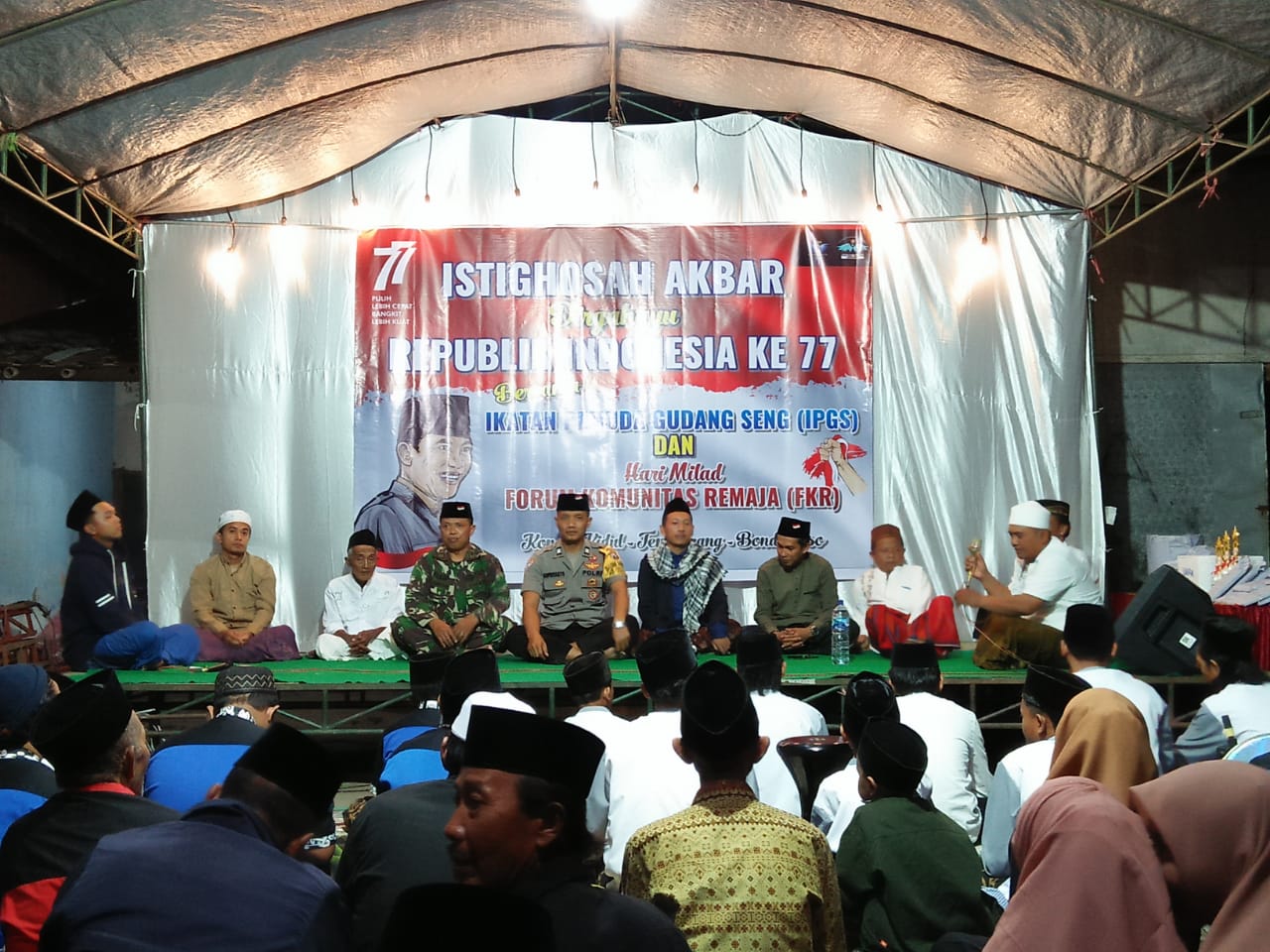 Bondowoso, KLIKTODAY.CO.ID – Babinsa Koncer Kidul Koramil 0822/04 Tenggarang Pelda Mustain menghadiri acara Istighosah Akbar dan doa bersama dalam rangka HUT Proklamasi Kemerdekaan RI Ke-77 Tahun 2022 yang diselenggarakan oleh Ikatan Pemuda Gudang Seng (IPGS) dan Forum Komunitas Remaja (FKR) bertempat di Balai Desa Koncer Kidul Kecamatan Tenggarang Kabupaten Bondowoso, Jum’at (36/08/2022).
