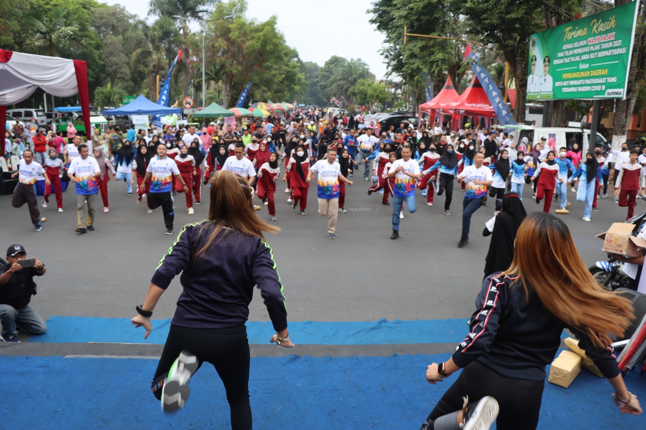 Acara senam dan Jalan sehat ini dalam rangkaian H.U.T lalu lintas ini dipandu oleh Bagong dan Lidya. Antuasias masyarakat Bondowoso tumpah ruah di keceriaan Minggu pagi ini. (Hms/Red)