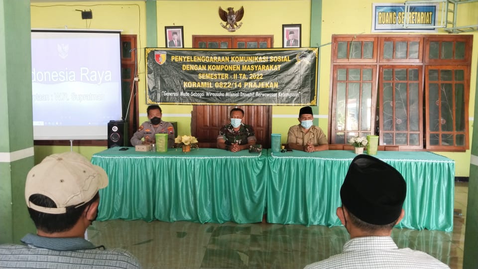 Dalam sambutannya, Danramil 0822/14 Prajekan Kapten Inf Norman Heru S., mengucapkan selamat datang dan terima kasih serta penghargaan setinggi-tingginya atas kehadiran para Komponen Masyarakat yang meluangkan waktu untuk menghadiri kegiatan Komsos ini.