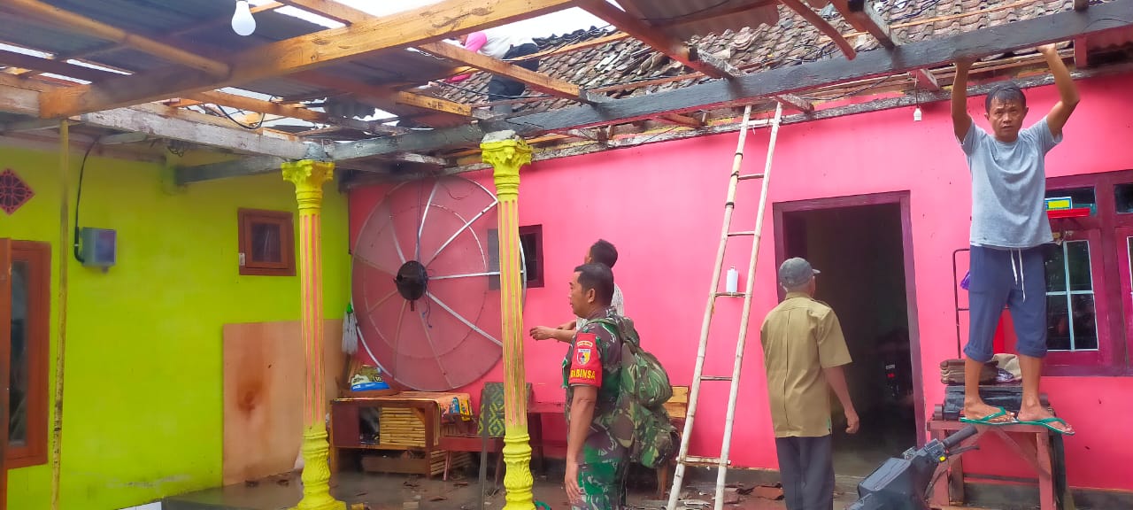 Gotong royong yang dilakukan Babinsa Pos Ramil 0822/12 Sumberwringin dan Babhinkamtibmas serta warga untuk membersihkan pepohonan yang tumbang serta membantu memperbaiki rumah warga yang rusak.