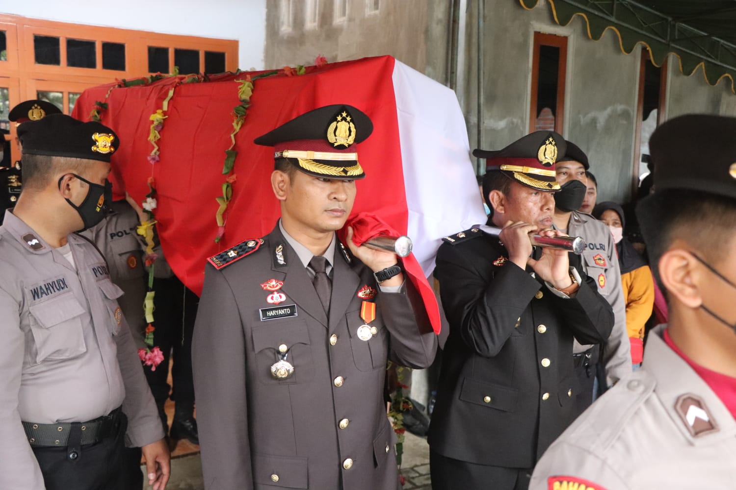 Ratusan personel yang merupakan anggota Polres Trenggalek dan rekan kerja almarhum turut hadir dan mengikuti rangkaian prosesi pemakaman tersebut.