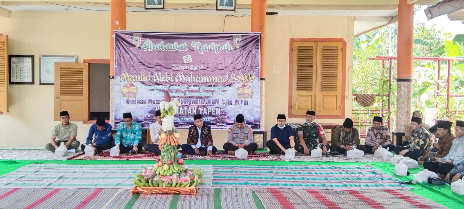 Camat Tapen menyampaikan ucapan terima kasih atas kehadiran Danramil, Kapolsek, jajaran kepala desa dan ibu sekalian, berkenan hadir pada peringatan maulid nabi Muhammad Saw di pendopo Kecamatan Tapen.