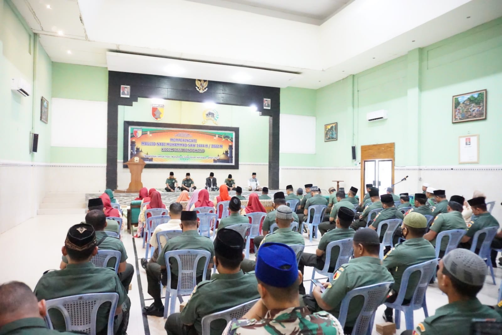 Bondowoso, KLIKTODAY.CO.ID – Keluarga Besar Kodim 0822 Bondowoso memperingati Maulid Nabi Muhammad SAW 1444 H/2022 bertempat di aula Jenderal Sudirman Makodim 0822 Bondowoso, Kamis (13/10/2022).