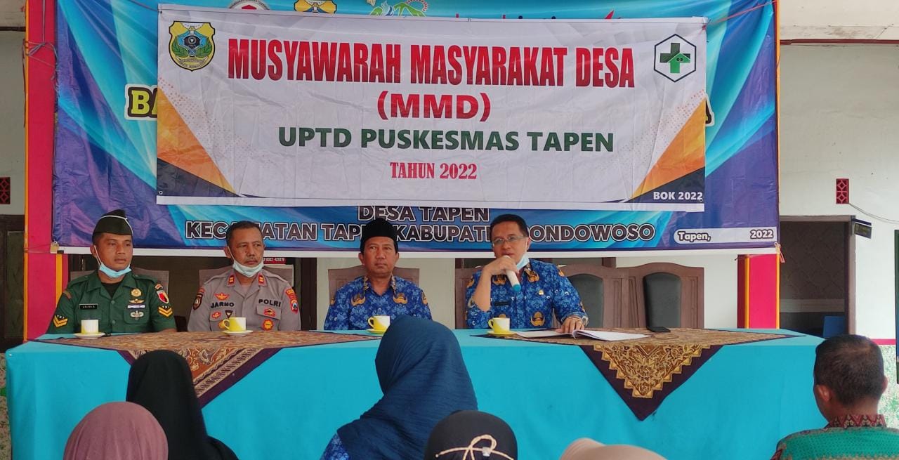 Bondowoso, KLIKTODAY.CO.ID – Babinsa Koramil 0822/11 Tapen Kodim 0822/Bondowoso Sertu Lolok Sugianto menghadiri kegiatan Rapat Musyawarah Masyarakat Desa (MMD) Tahun 2022 yang di selenggarakan oleh UPTD Puskesmas Tapen bertempat di Balai Desa Tapen Kecamatan Tapen Kabupaten Bondowoso, Senin (17/10/2022).