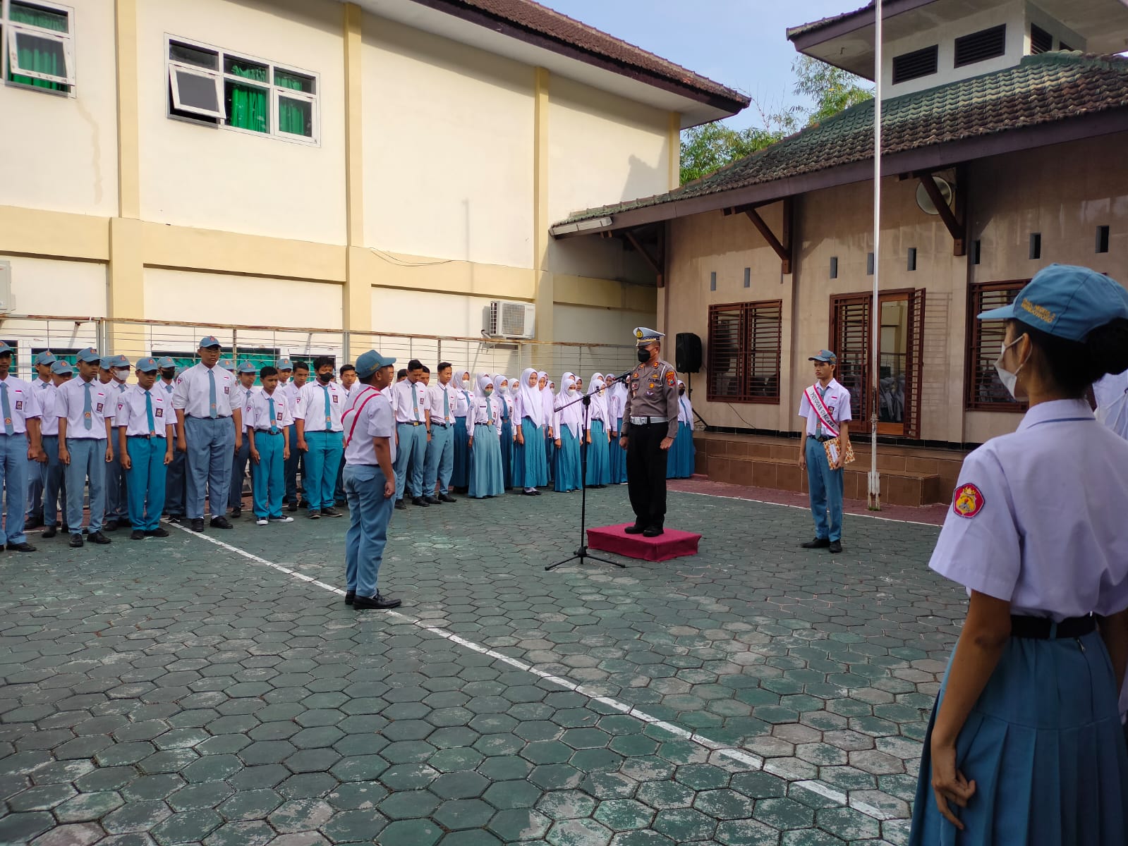Bondowoso, KLIKTODAY.CO.ID – Satuan Lalu Lintas (Satlantas) Polres Bondowoso menggelar sosialisasi tertib berlalu lintas sekaligus terkait penerapan protokol kesehatan Covid-19 di SMKN 2 Bondowoso.