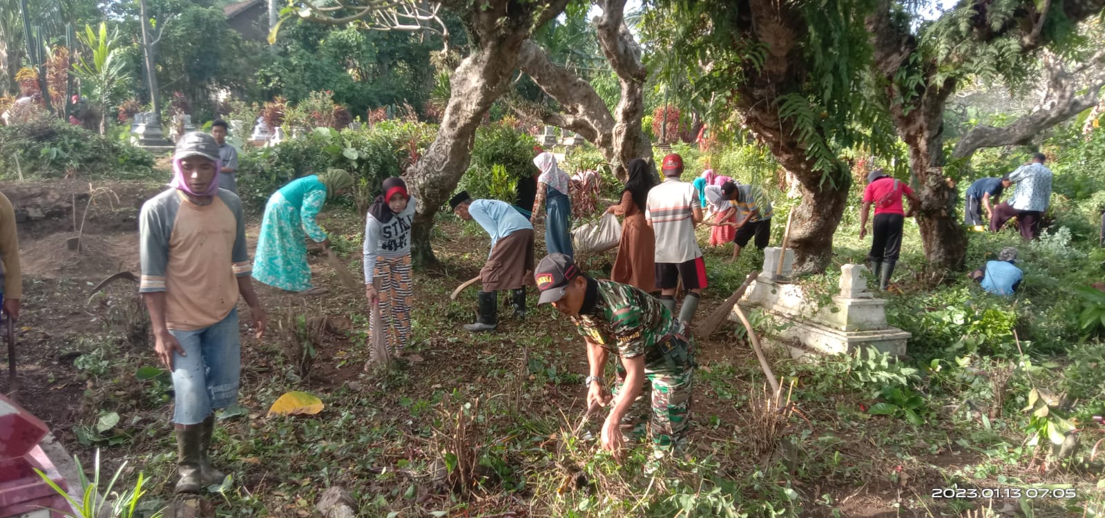Jum’at Bersih, Babinsa Koramil 0822/12 Sukosari Ajak Warga Bersihkan TPU