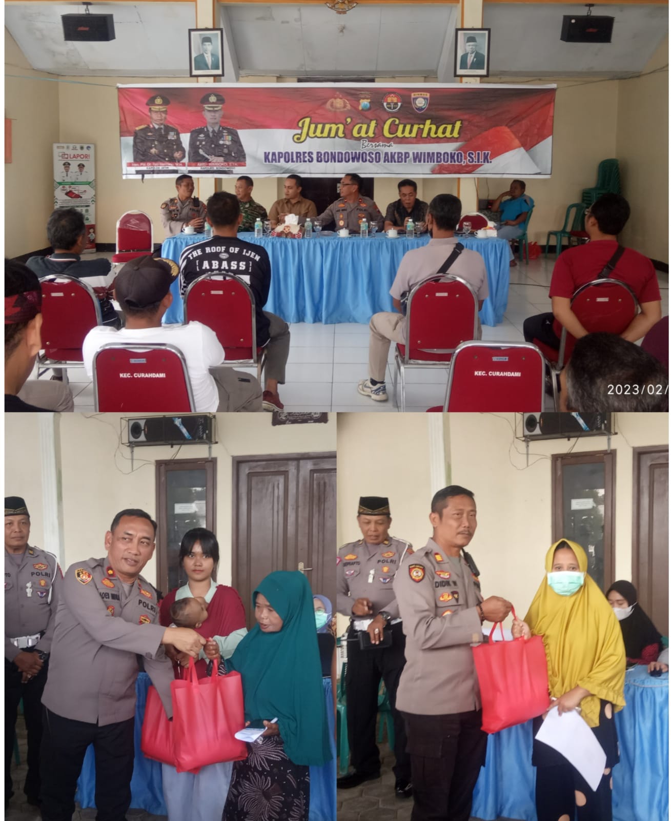 Bondowoso, KLIKTODAY.CO.ID – Kegiatan rutin yang digelar oleh Institusi Polri dalam cara pendekatan kepada masyarakat melalui kegiatan Jumat Curhat. Dalam kegiatan tersebut masyarakat bisa menyampaikan aspirasi atau uneg-unegnya kepada pihak Polri.