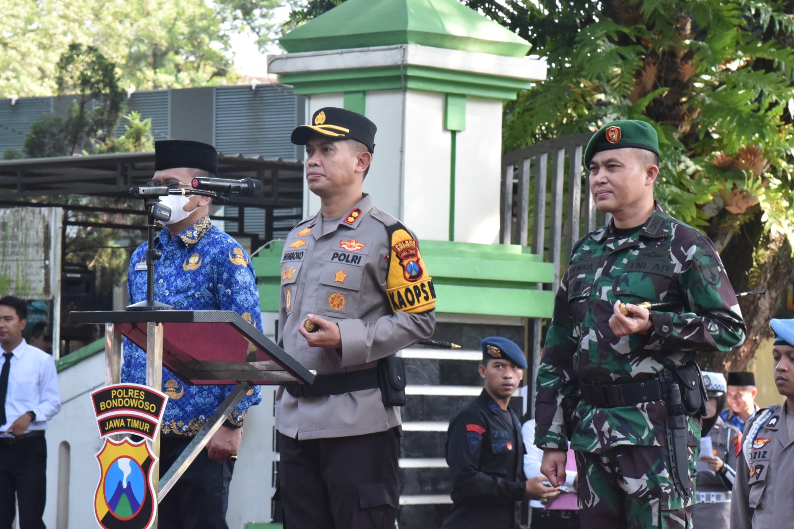 Saat Press Conference Kapolres AKBP WimbokoS. IK. M. Si.,didampingi oleh Dandim 0822 Bondowoso Letkol Arm Suhendra Chipta M. Tr.Hanla.,dan Sekda Bondowoso Bambang Soekwanto serta para PJU Polres Bondowoso.