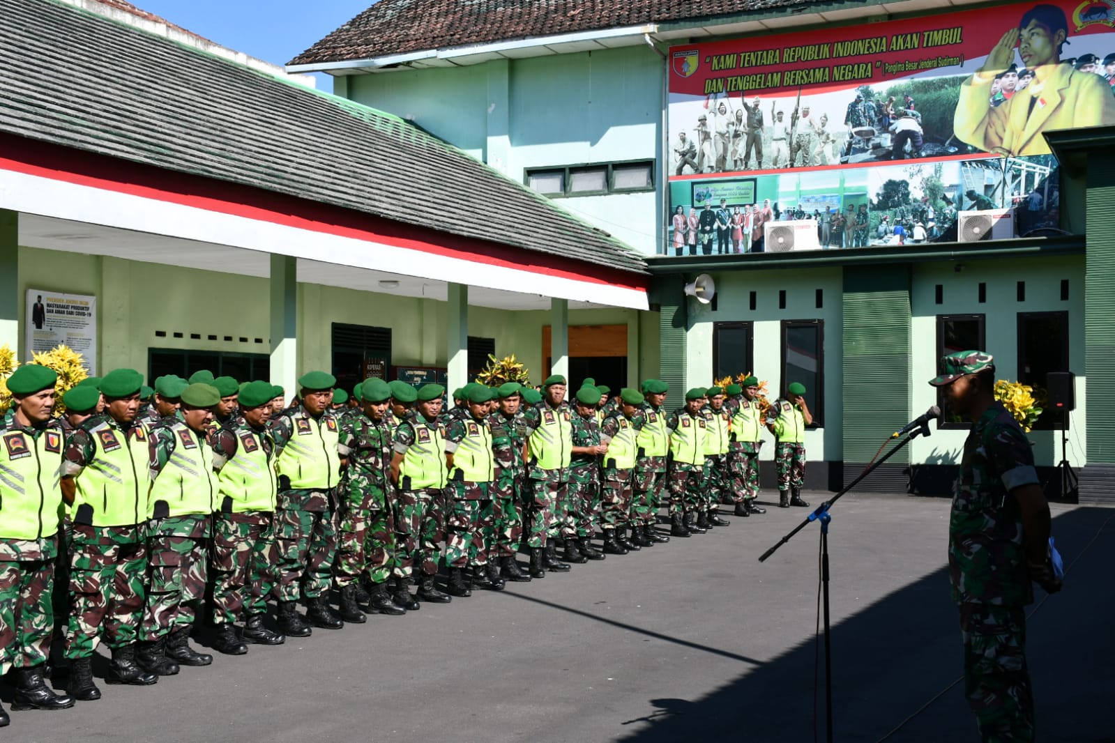Kapten Arm Edi menyampaikan, “Dalam pelaksanaan pengamanan menempati obyek-obyek/plotting, anggota personel agar sigap dan siap dalam kondisi apapun di lapangan, juga jaga faktor keamanan. Apel hari ini merupakan gong pembuka untuk memulai kegiatan pengamanan.