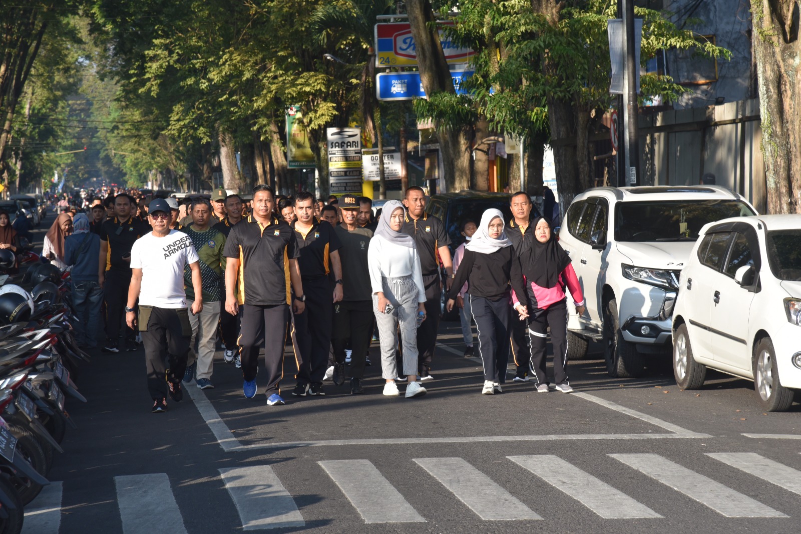 Bondowoso, KLIKTODAY.CO.ID – Dalam rangka merayakan HUT Bhayangkara ke 77 yang jatuh tanggal 1 Juli 2023, Polres Bondowoso menggelar kegiatan jalan santai, Minggu (18/6/2023) pagi diikuti peserta baik dari Jajaran Polres, TNI, dan Pemerintah Kota (Pemkot) dan masyarakat Bondowoso.