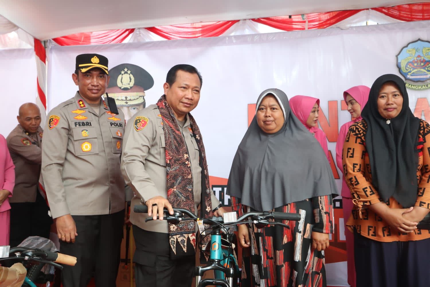 Sebelumnya Kapolda Jatim dan Ketua Bhayangkari Daerah Jawa Timur memberikan santunan kepada anak yatim piatu dan memberikan bantuan kursi roda kepada disabilitas di Bangkalan.