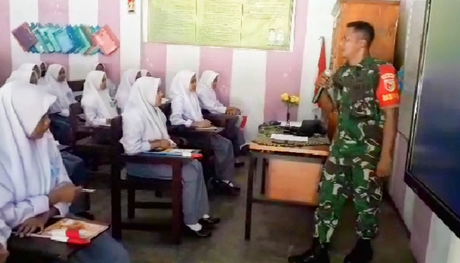Dihadapan peserta didik baru, menyajikan materi Wawasan Kebangsaan dengan tema Dasar-Dasar Bela Negara, Empat Pilar Kebangsaan dan Nilai – Nilai Luhur Pancasila. Pada cuplikan sesi ini, tampak Serka Suratin mengupas Nilai –Nilai Luhur Pancasila dari Sila Pertama hingga Sila ke-Lima.