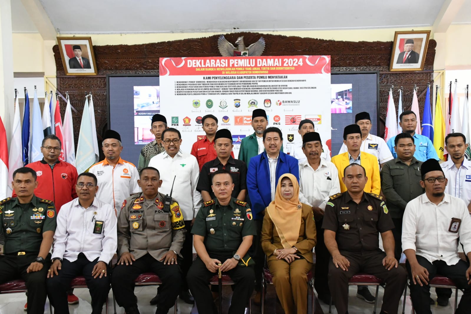 – Komandan Komando Distrik Militer 0822/Bondowoso Letnan Kolonel Arm Suhendra Chipta, M.Tr.Hanla., menghadiri dalam acara Deklarasi Pemilu Damai tahun 2024, yang berlangsung di Pendopo Kabupaten Bondowoso Prov. Jawa Timur, Senin (30/10/2023).