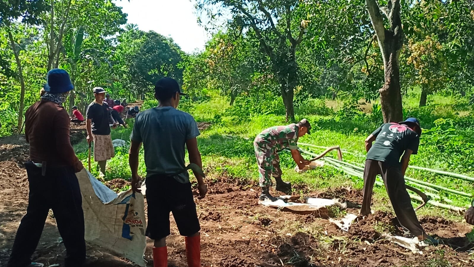 Walaupun kegiatan tersebut dilakukan hanya dengan alat bantu sederhana, tanpa menggunakan alat berat, namun Haji Saleh berserta Serda Slamet Sugiarto Babinsa Koramil 0822/14 Prajekan dan warga lainnya terlihat kompak bahu-membahu secara langsung dalam aktivitasnya membersihkan dan meratakan lahan. (Pendim0822).