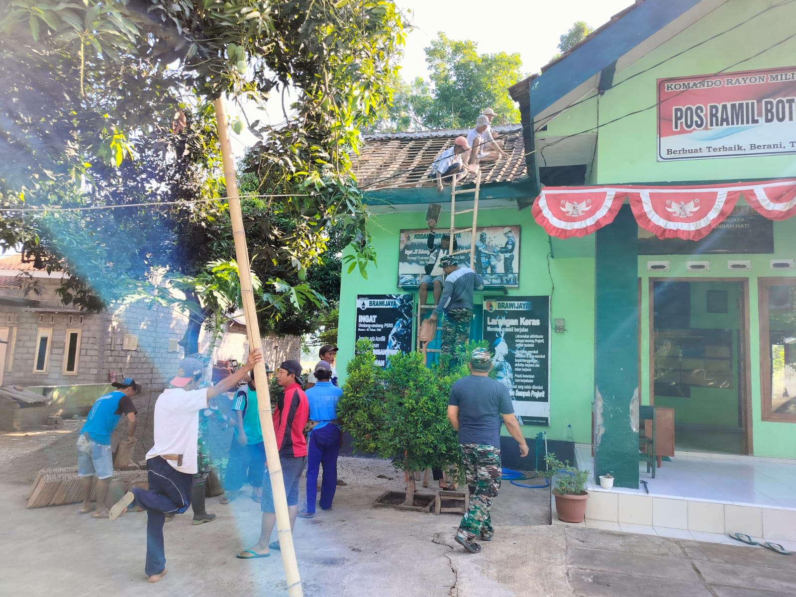 Danpos dan anggota Posramil 0822/14 Botolinggo Kodim 0822/Bondowoso bersama-sama untuk memperbaiki Koramil sebagai bentuk kecintaan terhadap lingkungan Makoramil, apalagi musim hujan deras yang mengakibatkan kebocoran yang di sebabkan genteng pecah, plafon, dan seng yang sudah lama berkarat, untuk itu sebagai tugas bersama sebagai anggota Koramil, Senin (27/11/2023).