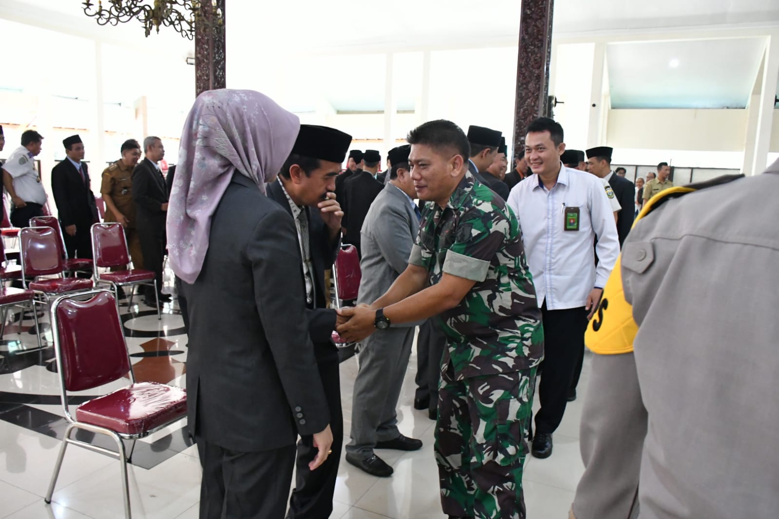 Bondowoso, SIBERNUSANTARA.CO.ID – Kasdim 0822 Bondowoso Mayor Inf Tanuri turut hadir dalam pelaksanaan pengembalian delapan pejabat eselon II oleh Pemerintah Kabupaten Bondowoso sesuai rekomendasi dari Komisi Aparatur Sipil Negara (KASN) bertempat di Pendopo Bupati Jl. Letnan Karsono, Blindungan, Kecamatan Bondowoso, Kabupaten Bondowoso, Jawa Timur. Senin (4/12/23).