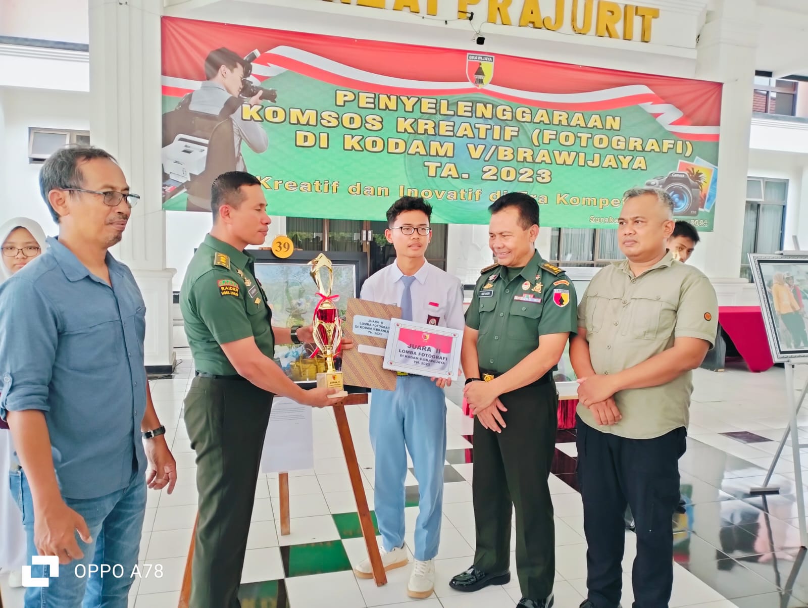 Siswa SMKN 1 Prajekan perwakilan Kodim 0822 Bondowoso raih juara 2 dalam kegiatan lomba Penyelengaraan Komsos atau fotografi tingkat Kodam V Brawijaya.