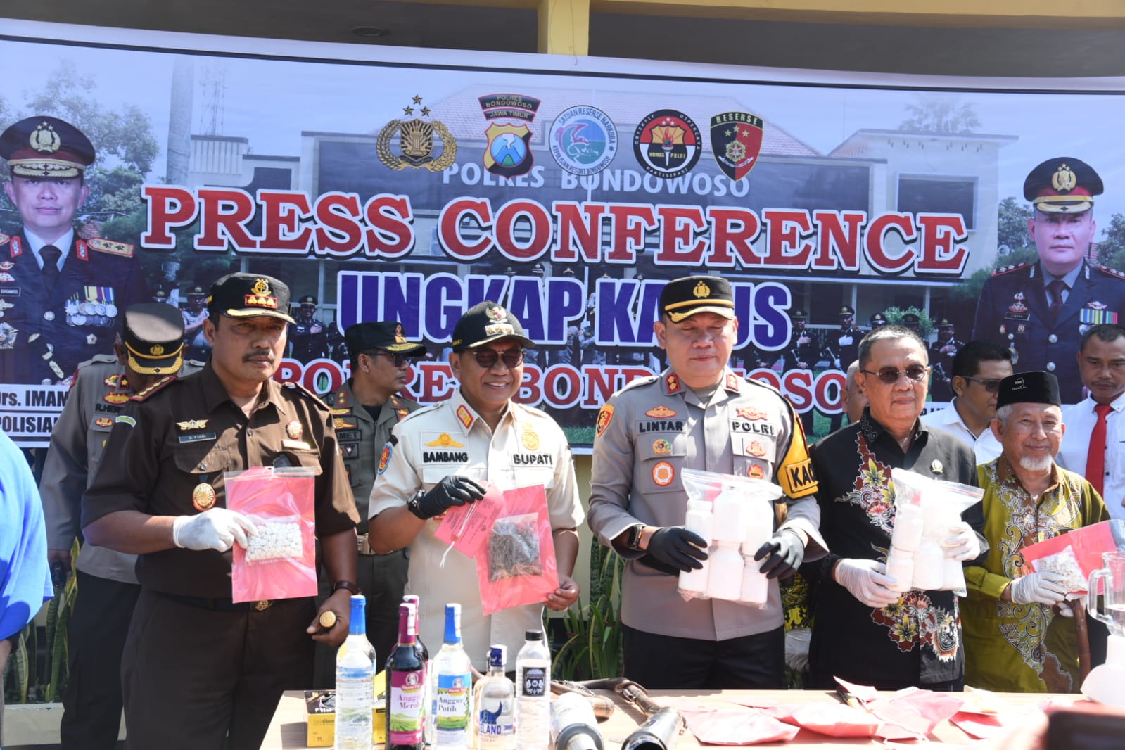 Untuk itu Polres Bondowoso menggelar Pres Release akhir Tahun 2023 serta pemusnahan barang bukti yang selama Tahun 2023 berhasil diungkap. Tepatnya pada hari Kamis 21/12 2023 bertempat di halaman Mapolres Bondowoso.