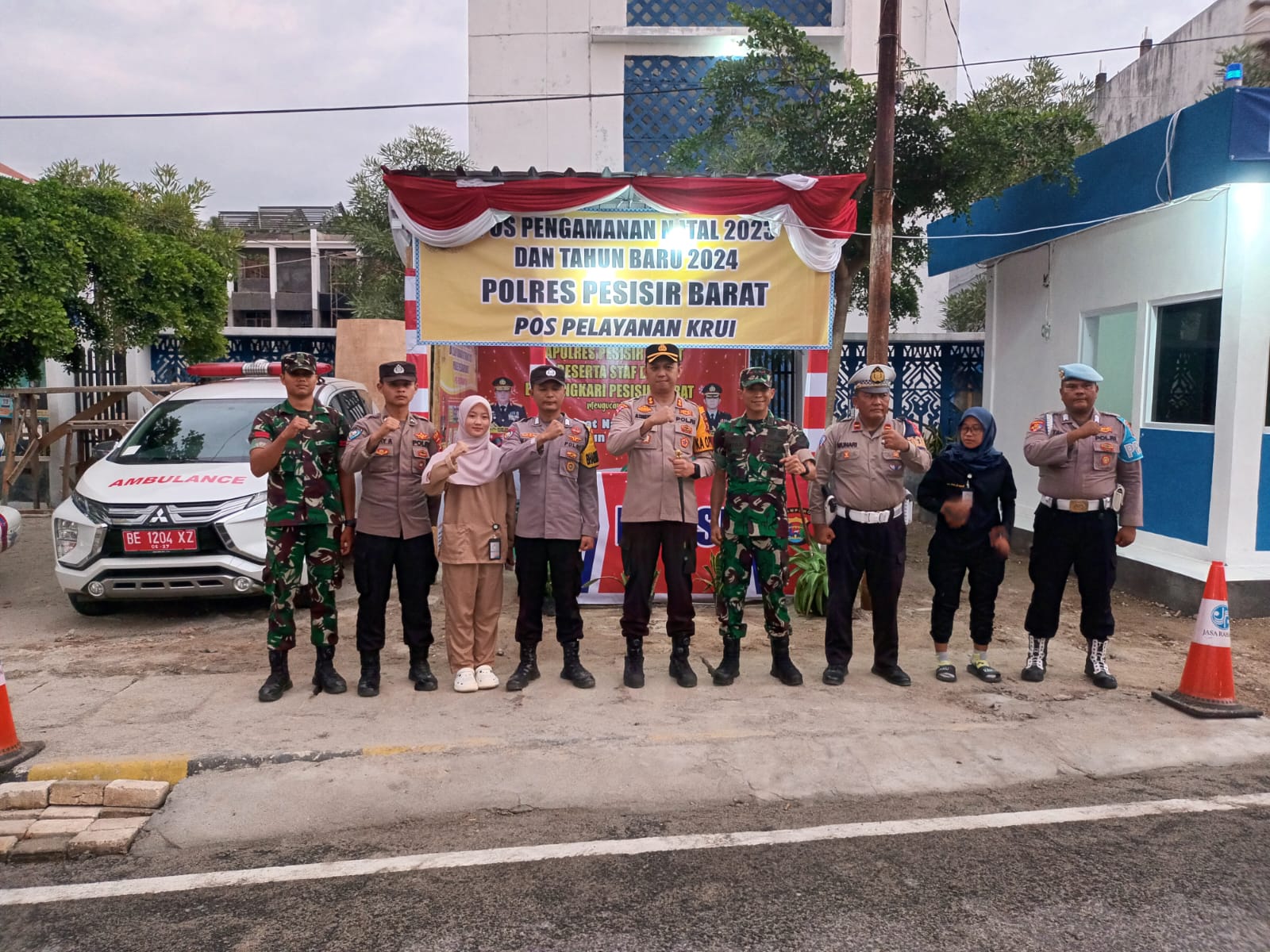 Pesisir Barat, SIBERNUSANTARA.CO.ID -Kapolres Pesisir Barat AKBP Alsyahendra, S.I.K.,M.H. bersma Dandim 0422/LB Letkol inf Rinto Wijaya, S.A.P., M.I.Pol., M. Han melaksanakan pengecekan Pos pengamanan Natal 2023 dan Tahun Baru 2024 Polres Pesisir Barat di Gudang logistik KPU, Pos Pengamanan tanjung setia dan pos pelayanan krui di jalan lintas barat krui Kec. Pesisir tengah Kab. Pesisir Barat, Sabtu (23/12/2023).