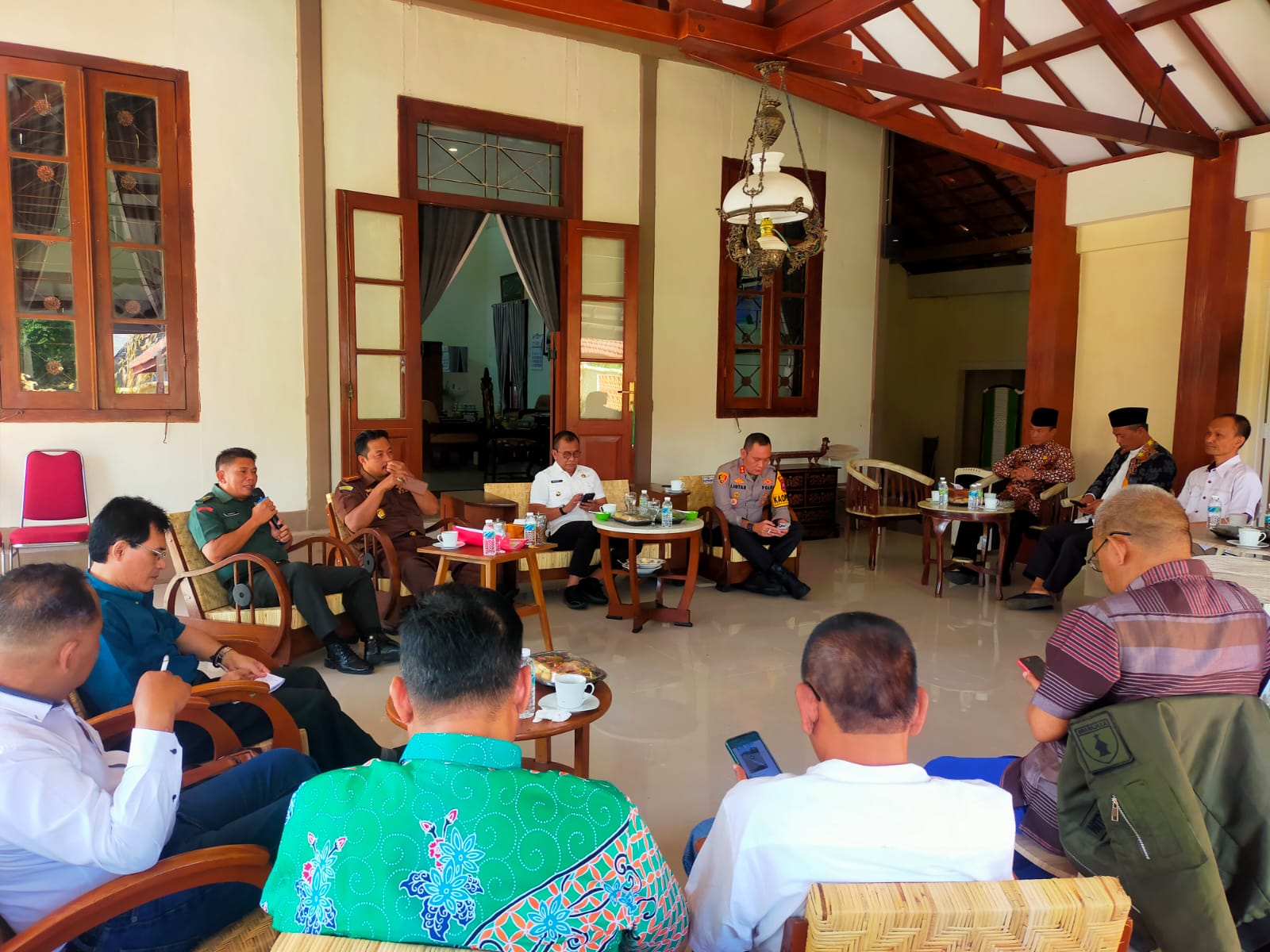 Tampak hadir Pj Bupati Bondowoso Bambang Soekwanto, Pj Sekda Bondowoso Haeriah Yulianti, Kapolres Bondowoso AKBP Lintar Mahadhono, Kajari Bondowoso, Ketua MUI, Perwakilan BIN (Badan Intelijen Negara) dan Kasdim 0823 Bondowoso Mayor Inf Tanuri serta Anggota FKDM Bondowoso