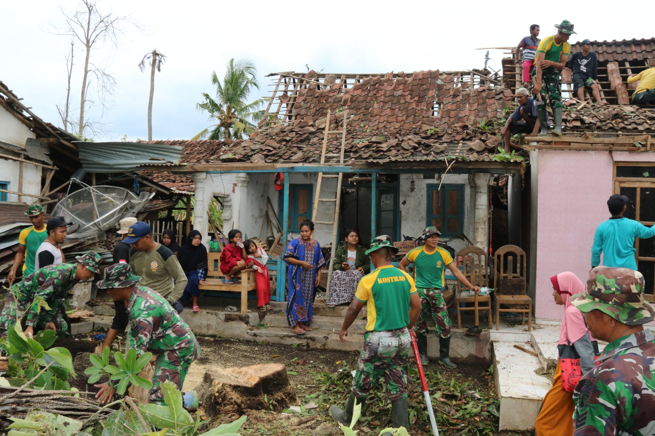 Yonif 514/SY/9/2 Kostrad menerjunkan sebanyak 1 SST dpp Lettu Inf Yahya Hauzan bekerjasama dengan Anggota Kodim 0822, Polres Bondowoso, BPBD, Damkar, serta masyarakat sekitar. Semua elemen bekerja sama saling bahu-membahu membersihkan bekas puing-puing rumah yang rusak, pohon tumbang yang menutupi jalan akibat angin puting beliung ini .