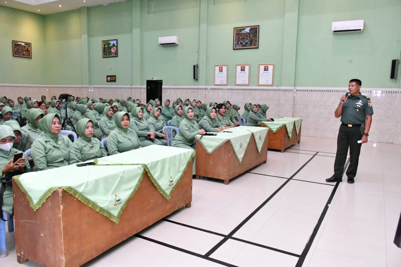 Dandim 0822 Bondowoso Letkol Arm Suhendra Chipta, M.Tr.Hanla., memberikan pengarahan Sosialisasikan Netralitas Persit dalam rangka Caleg Politik Menatap Pemilu Tahu 2024 Kepada seluruh anggota Persit KCK Cab. XXXVI Dim 0822 bertempat di aula Jenderal Sudirman Kodim setempat Jl. Letnan Sutarman No. 06 Bondowoso, Rabu (24/1).