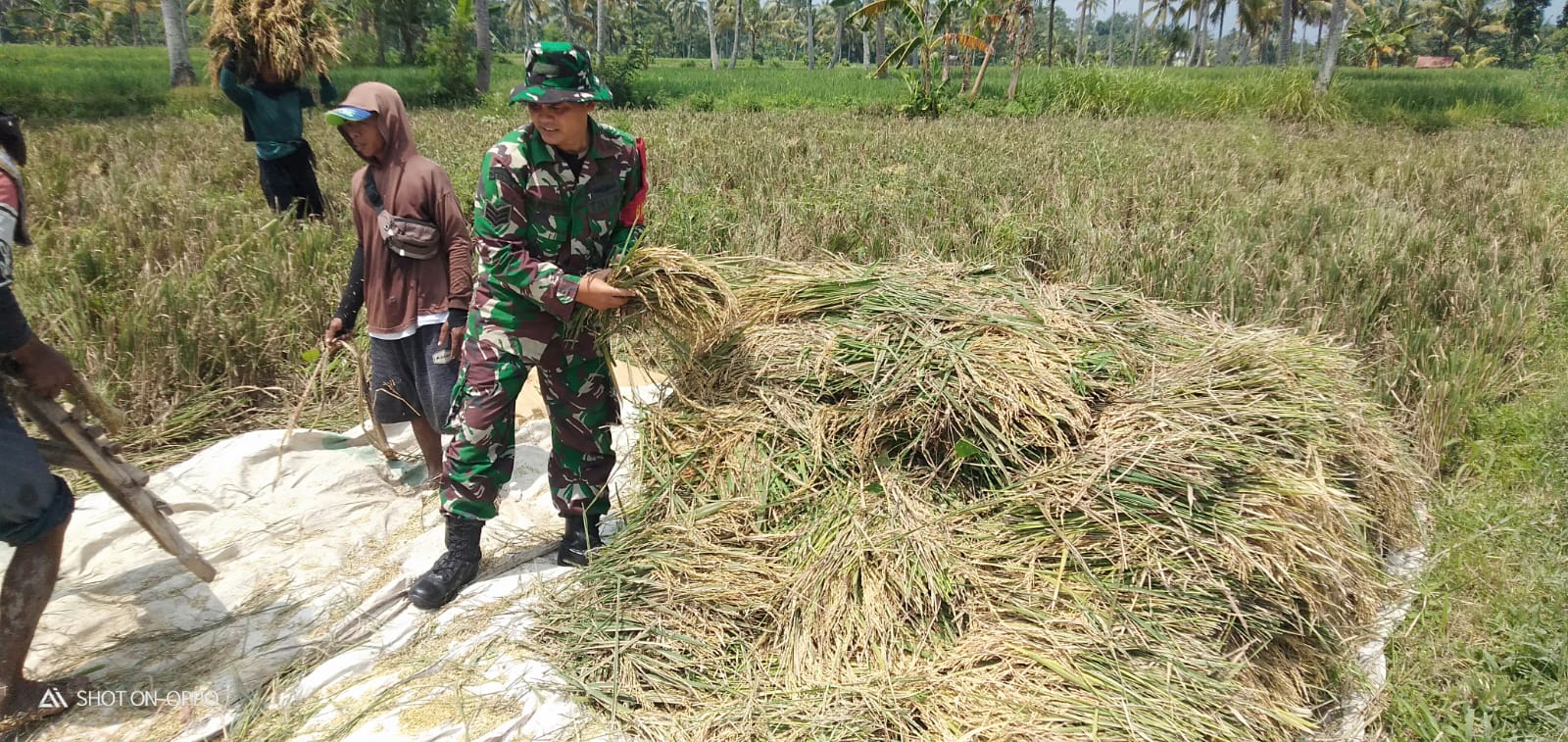 Serka Dwi Joko mengungkapkan, sebagai wujud dukungan TNI khususnya prajurit kewilayahan, Babinsa dalam mendukung ketahanan pangan, dengan semangat ikut serta terjun langsung ke sawah membantu petani desa binaannya saat memanen padi.