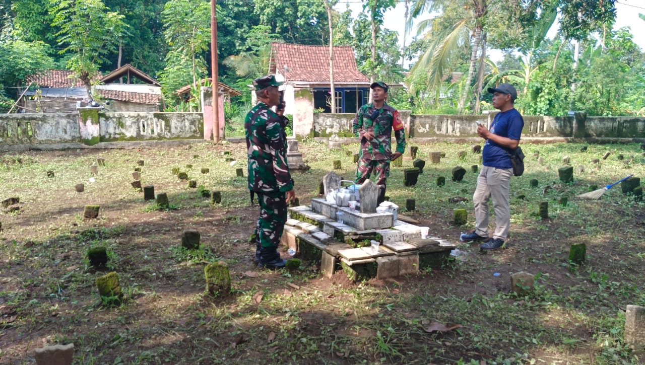 Kegiatan bersih bersih di fokuskan di Makam Umum, Kehadiran Babinsa Posramil disambut Pj Gayam Kidul bersama jajaran perangkat desa dan warga setempat.