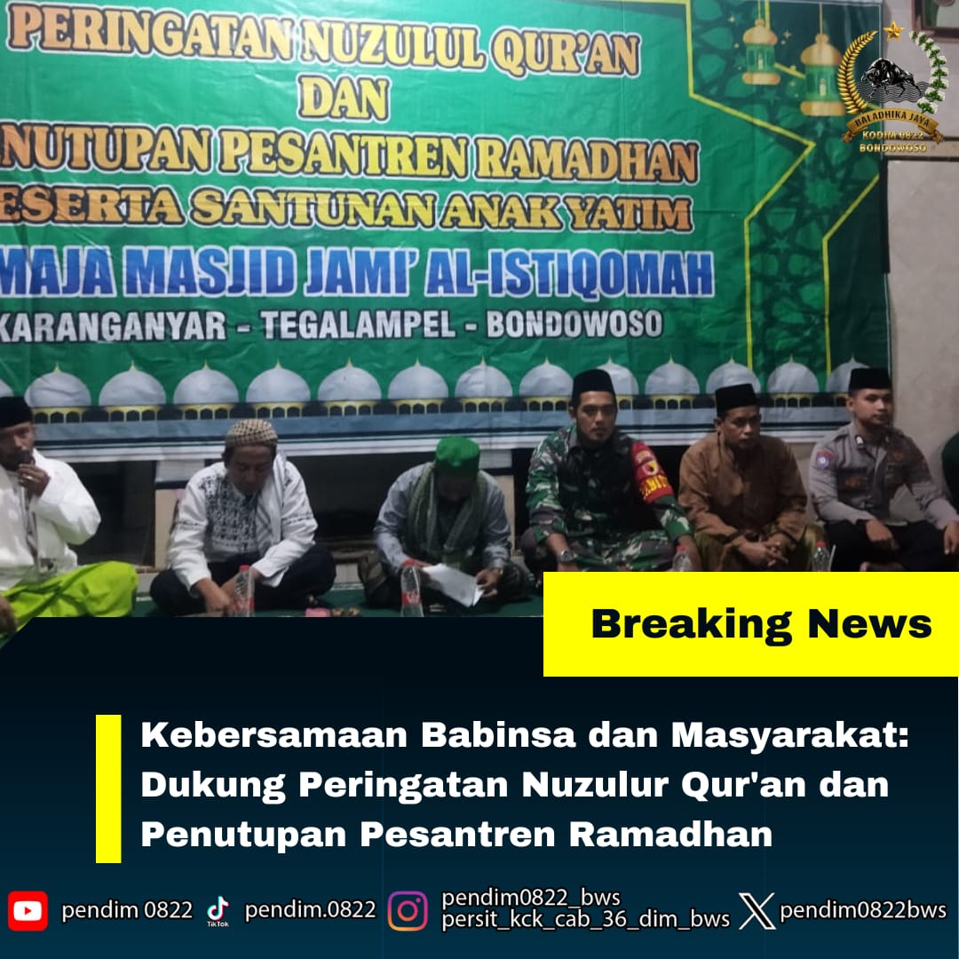 Dalam rangkaian kegiatan tersebut, Babinsa Desa Karanganyar, Serka Andri, hadir sebagai representasi dari Koramil 0822/03 Tegalampel. Kehadiran Babinsa tidak hanya sebagai pengawal keamanan, tetapi juga sebagai wujud nyata dari dukungan TNI terhadap kegiatan keagamaan dan sosial di masyarakat.