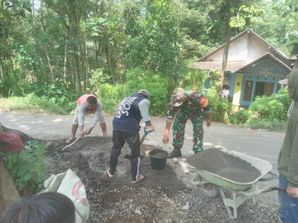Babinsa Dadapan bersama Warga Karya Bhakti Bangun Jalan Desa