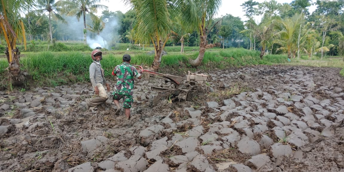 Kopka Ringgo CB Babinsa 0822 /12 Rejoagung pun terlihat mendampingi petani dalam pengolahan sawah milik Mukri di Desa Rejoagung Kecamatan Sumber wringin pada Kamis, 9/5/2024.