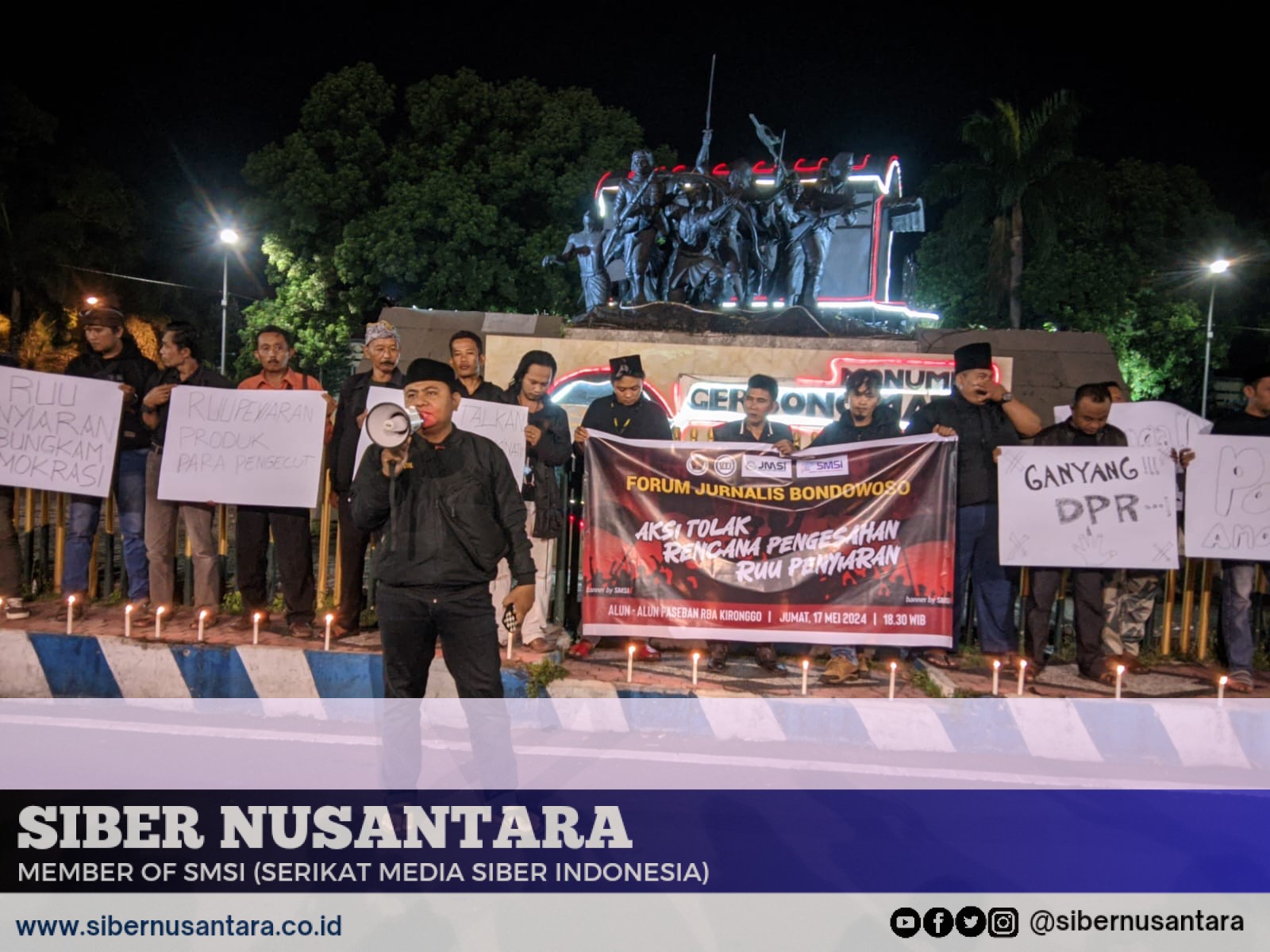 Merasa dibungkam Puluhan jurnalis di Kabupaten Bondowoso turun jalan melakukan aksi damai untuk menolak keras rencana pengesahan RUU Penyiaran yang dianggap mengancam kebebasan pers.