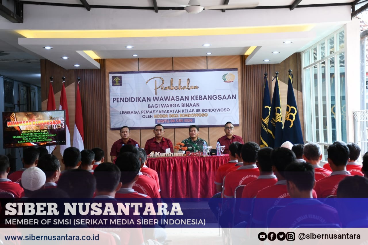 Sebanyak 70 Warga Binaan Pemasyarakatan (WBP) Lembaga Pemasyarakatan (Lapas) Bondowoso mengikuti pembekalan Bela negara melalui kegiatan Wawasan Kebangsaan bertempat di Lapas IIB Bondowoso Jl. Letnan Sudiono Kec/Kab. Bondowoso, Jatim, Sabtu, (8/6/2024).