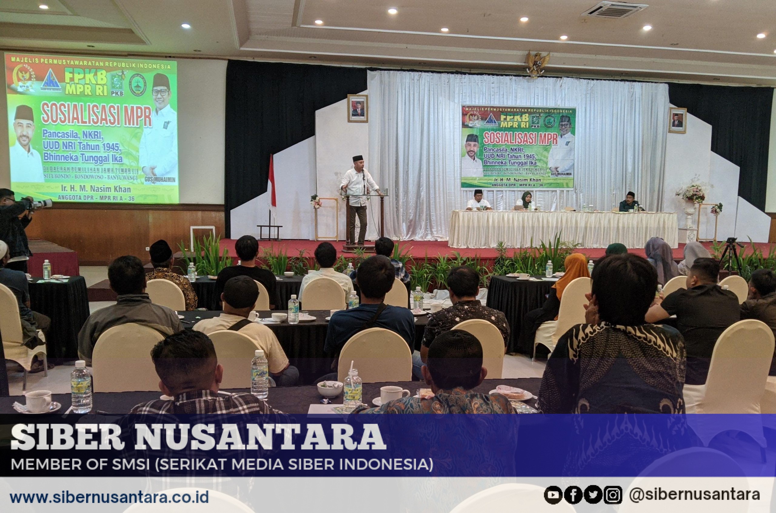 Anggota Dewan Perwakilan Rakyat Republik Indonesia (DPR RI) dari Fraksi Partai Kebangkitan Bangsa (PKB), Nasim Khan, menggelar sosialisasi Empat Pilar Majelis Permusyawaratan Rakyat Republik Indonesia (MPR RI) di Graha Sahmasy, Bondowoso. Minggu (23/6/24).
