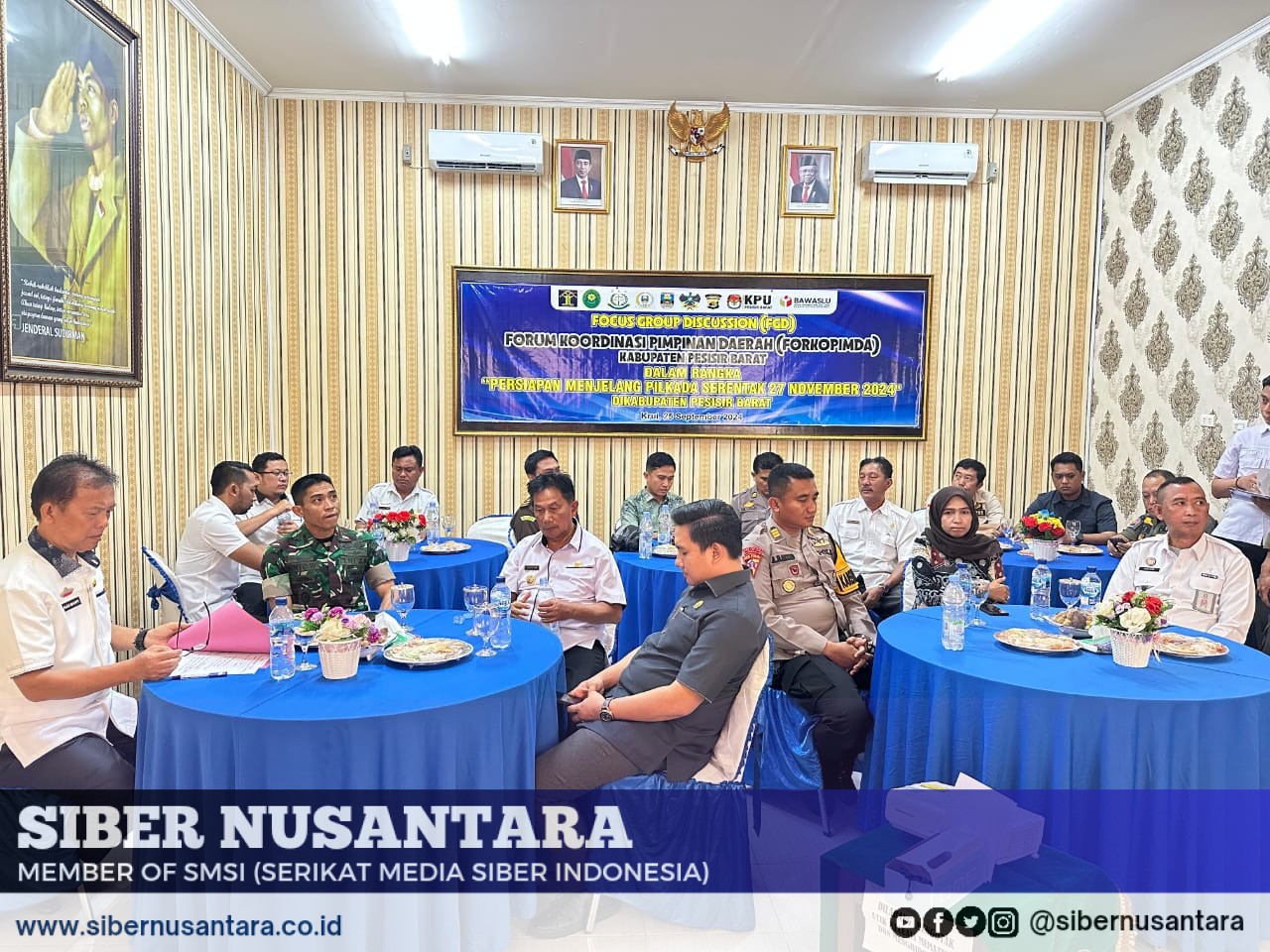 Pada Rabu, 25 September 2024 Pukul 09.30 Wib di Aula Makoramil 422-03/Pesisir Tengah Jl. Lintas Barat Pekon Lintik Kecamatan Krui Selatan Kabupaten Pesisir Barat, Telah dilaksanakan Focus Group Discussion (FGD) Forum Komunikasi Pimpinan Daerah (Forkopimda Kabupaten Pesisir Barat Dalam Rangka Persiapan Menjelang Pilkada Serentak 27 November 2024 Di Kabupaten Pesisir Barat.
