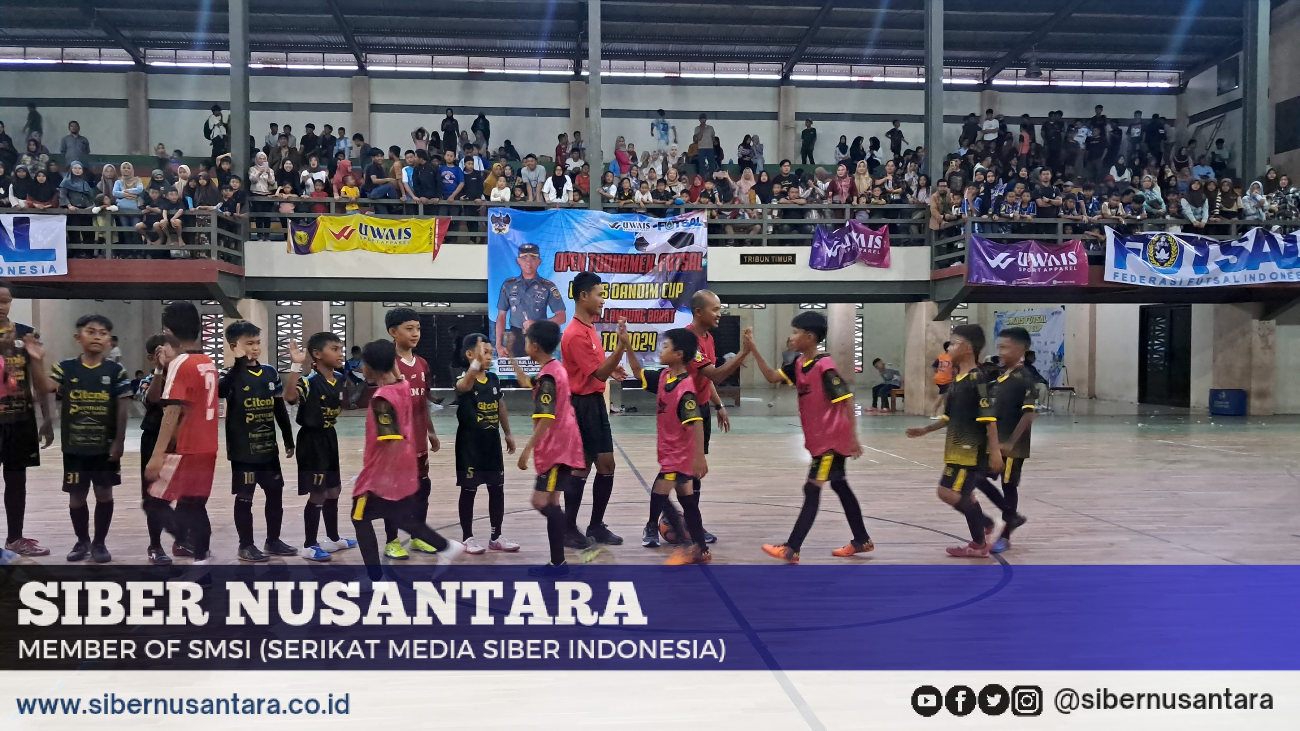 Letkol Inf Rinto Wijaya, S.A.P., M.I.POL., M.HAN, membuka secara resmi pertandingan futsal antar sekolah se-Kabupaten Lampung Barat dan Kabupaten Pesisir Barat di GOR Ajisaka, Kawasan Sekuting Terpadu, Kabupaten Lampung Barat, pada Minggu (10/11/2024).