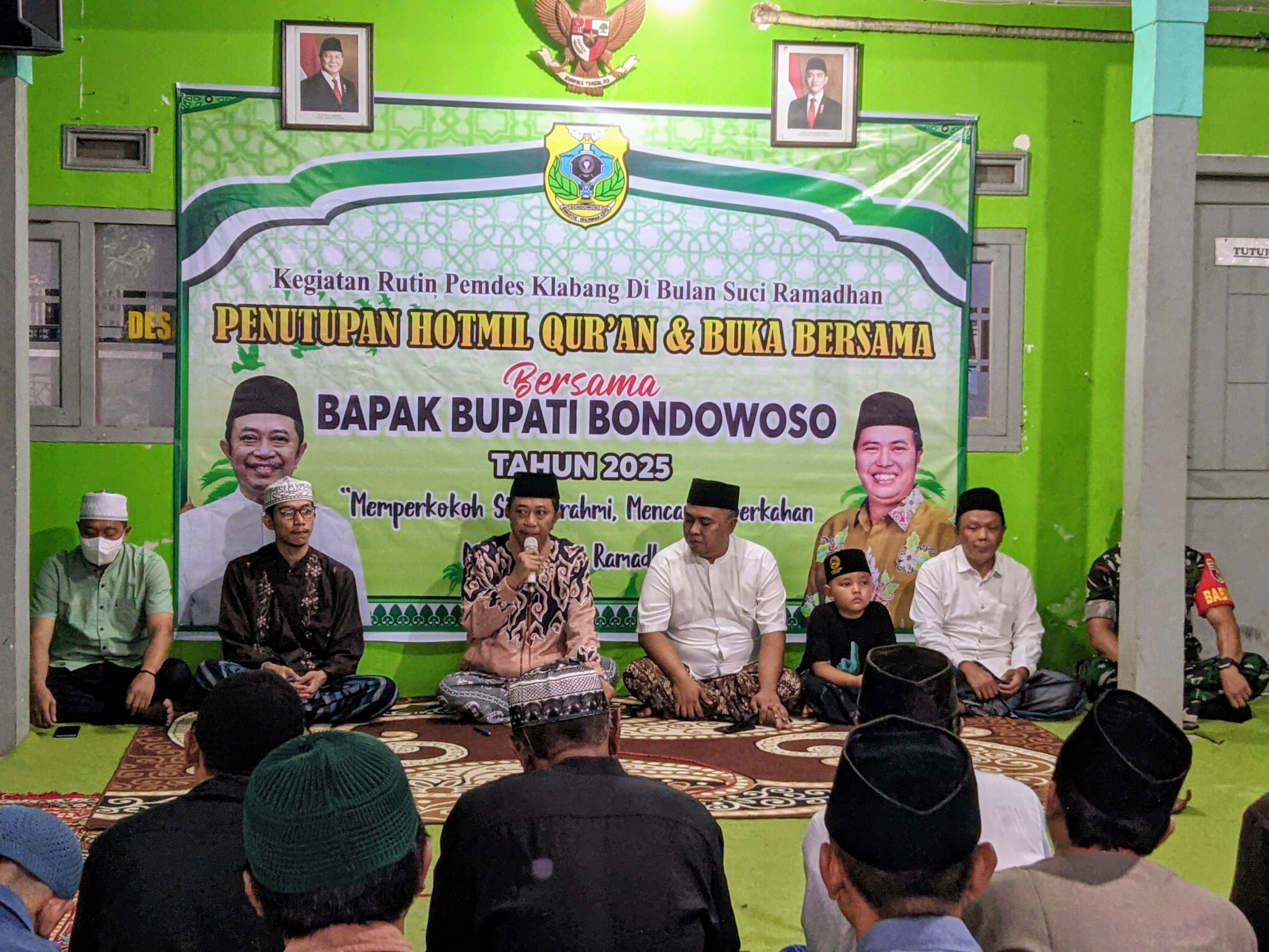 Puncak bulan suci Ramadhan 1446 H, Bupati Bondowoso KH. Abdul Hamid Wahid menghadiri acara Khotmil Qur’an dan buka bersama di Desa Klabang, Kecamatan Klabang.
