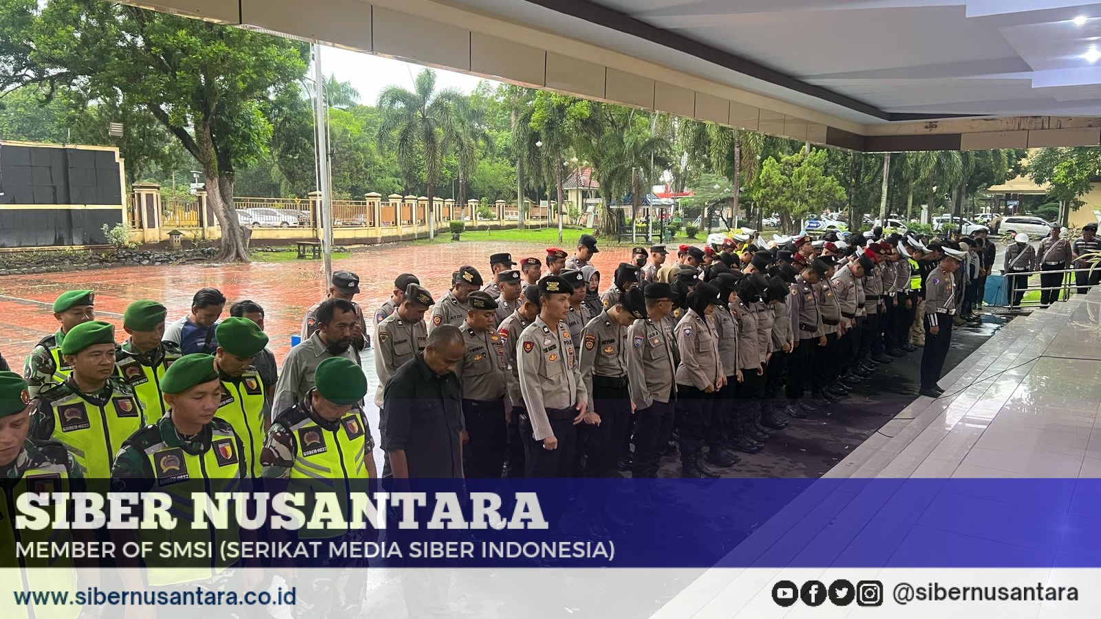 Meskipun hujan mengguyur, Polres Bondowoso tetap menggelar apel gelar pasukan di halaman kantor Pemkab Bondowoso dalam rangka pengamanan malam takbir Hari Raya Idul Fitri 1 Syawal 1446 H. Apel ini dipimpin langsung oleh Kapolres Bondowoso, AKBP Harto Agung Cahyono, SH., SIK., MM., dan diikuti oleh jajaran Polres Bondowoso, TNI, Dishub, Satpol PP, Dinas Kesehatan, BPBD, Banser, dan Pramuka.