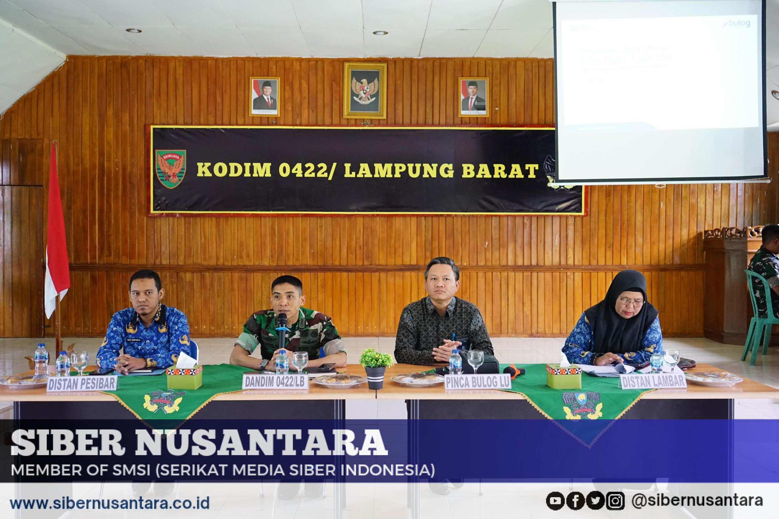 Kodim 0422/Lampung Barat melaksanakan Rapat Koordinasi (Rakor) Percepatan Penyerapan Gabah dan Beras Dalam Negeri yang berlangsung di Aula Sudirman Kodim 0422/LB, Jl. Raden Intan, Kelurahan Way Mengaku, Kecamatan Balik Bukit, Kabupaten Lampung Barat. Kegiatan dimulai sekitar pukul 09.30 WIB.