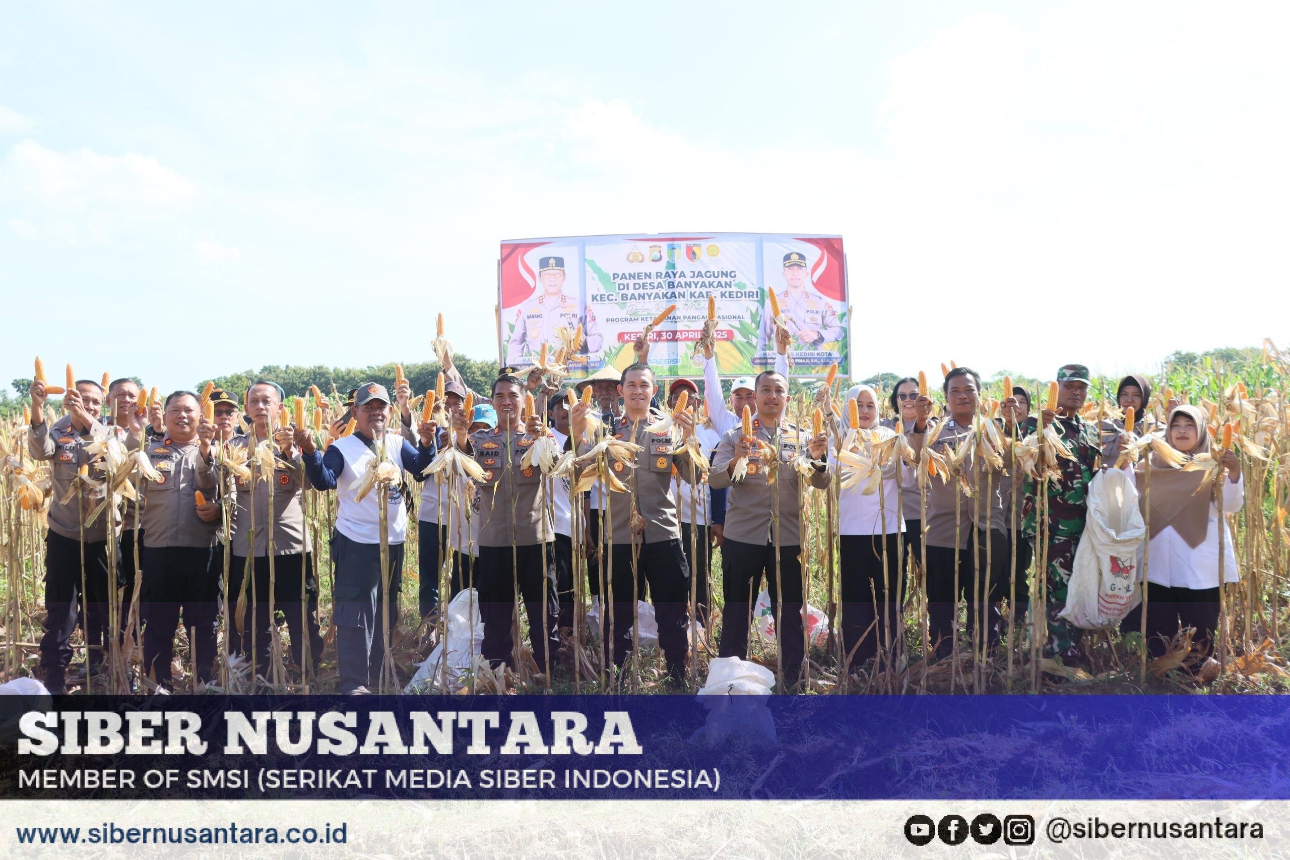 Dalam rangka mendukung ketahanan pangan nasional, Polres Kediri Kota Polda Jatim bersama kelompok tani melaksanakan panen raya jagung di Dusun Kamal Desa Banyakan Kecamatan Banyakan Kabupaten Kediri, Rabu (30/4/2025).