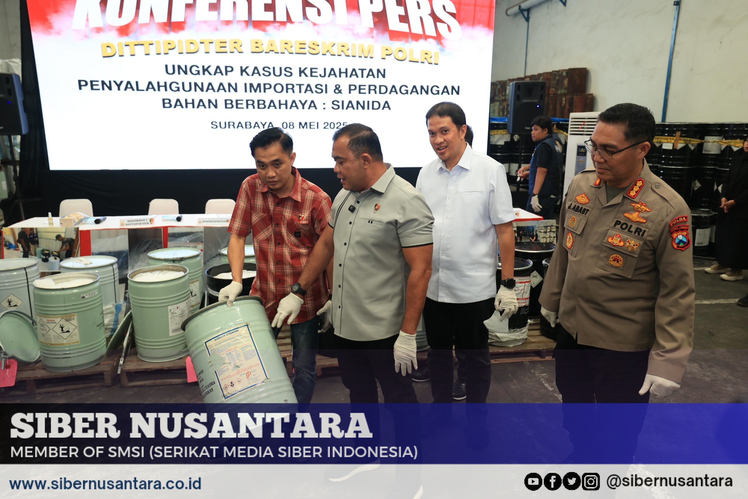 Direktorat Tindak Pidana Tertentu (Dittipidter) Bareskrim Polri berhasil mengungkap kasus perdagangan ilegal sianida di dua lokasi, di Jawa Timur, yakni di Surabaya dan Pasuruan.
