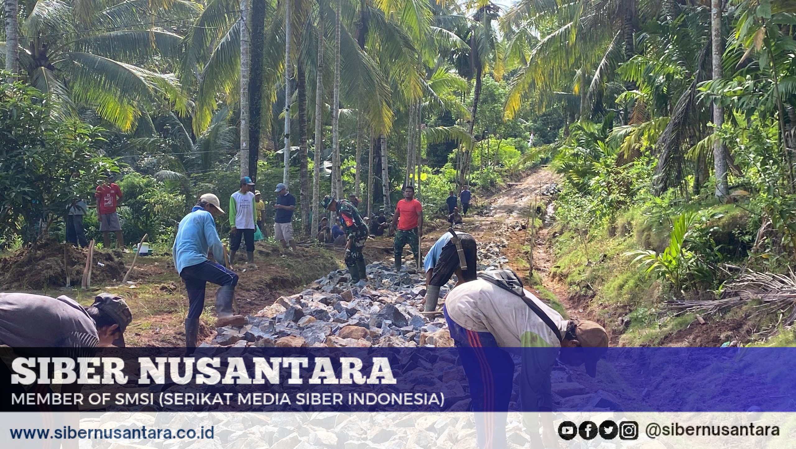Semangat kebersamaan dan gotong royong antara masyarakat dan Satgas TMMD ke-124 Kodim 0422/Lampung Barat terlihat jelas dalam kegiatan pemecahan batu untuk pembangunan badan jalan onderlagh di Pekon Pemerihan, Kecamatan Bangkunat, Sabtu 17-05-2025.