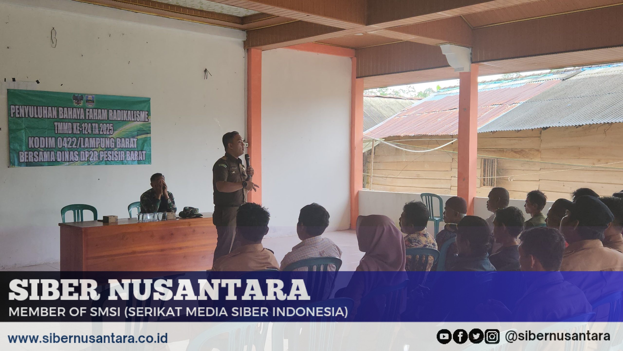 Satuan Tugas TNI Manunggal Membangun Desa (Satgas TMMD) ke-124 Kodim 0422/Lampung Barat menggelar kegiatan penyuluhan tentang bahaya paham radikalisme kepada masyarakat di Pekon Pemerihan, Kecamatan Bengkunat, Kabupaten Pesisir Barat.