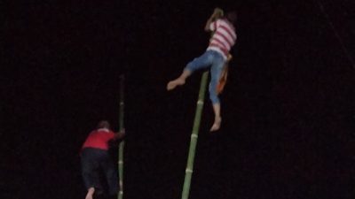 “Iya mas, saat tampil di solo, Denpasar Bali dan Kawah Ijen Bondowoso, ratusan warga tampak tegang ketika melihat atraksi kami di atas pohon bambu, mereka terlihat heran dan kagum,” Ungkapnya.