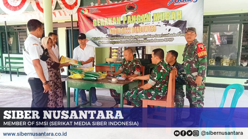 Kodim 0822 Bondowoso Jawa Timur (Jatim) bekerja sama dengan Bulog Cabang Bondowoso menggelar Gebyar Gerakan Pangan Murah (GPM) di Koramil 0822/11 Tapen, Kecamatan tapen Kabupaten bondowoso, Rabu (20/8/2025).