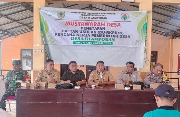 Pemerintah Desa (Pemdes) Klampokan, Kecamatan Klabang menggelar Musyawarah Desa (Musdes) dalam rangka Rencana Penetapan Daftar Usulan RKPDes Tahun Anggaran 2026, Selasa (16/9/25).