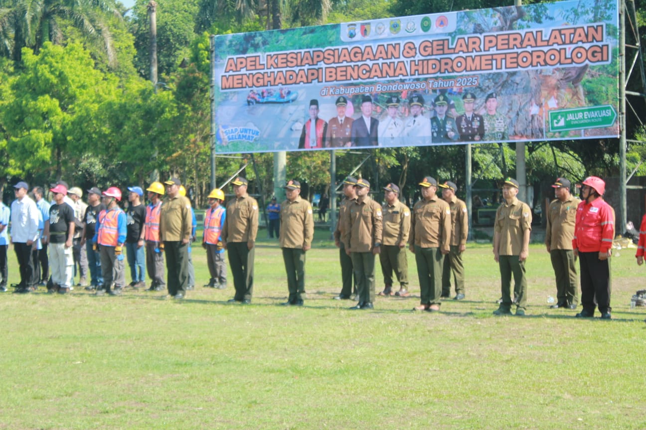 Kegiatan ini dihadiri oleh Bupati Bondowoso, Abdul Hamid Wahid, S.Ag., selaku pembina apel, didampingi jajaran Forum Koordinasi Pimpinan Daerah (Forkopimda), perwakilan TNI–Polri, Dinas Sosial, Dinas Lingkungan Hidup, BPBD, PMI, Tagana, Relawan, serta unsur BUMN/BUMD termasuk Perhutani. PMI, Mahasiswa, Pramuka serta berbagai organisasi relawan kebencanaan Apel tersebut bertujuan untuk mengevaluasi kesiapan personel dan sarana prasarana dalam menghadapi potensi bencana seperti banjir, tanah longsor, dan angin kencang yang sering terjadi di wilayah Bondowoso pada musim hujan.